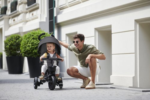 Otočné sedadlo Sedadlo môžete otočiť dopredu alebo dozadu. Vďaka tomu je detský bicykel vhodný pre deti od asi 9 mesiacov veku. Bude neoceniteľným spoločníkom na každú prechádzku a až vaša ratolesť vyrastie, môžete AVEO ľahko premeniť na samostatnú trojkolku.