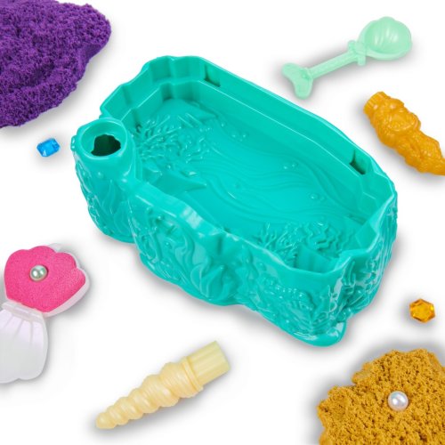Súprava Koralový útes obsahuje strieborný, zlatý a trblietavý piesok (500 g). Objavuj nástroje, formičky, perly a drahokamy s motívom morskej panny. Nájdi 6 ukrytých prekvapení. Vhodné od 3 rokov.
