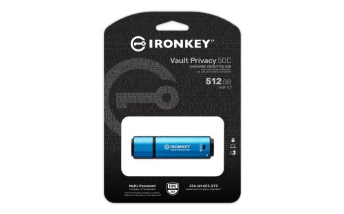 Kingston IronKey™ Vault Privacy radu 50C sú špičkové disky USB Type-C®, ktoré zaisťujú zabezpečenie Enterprice-Grade úrovne pomocou 256-bitového hardvérového šifrovania AES s certifikáciou FIPS 197 v režime XTS, vrátane zabezpečenia proti BadUSB pomocou digitálne podpísaného firmvéru a ochrany proti útoku hrubou silou. Na VP50 boli vykonané skúšky prelomenia pre zabezpečenie na Enterprice-Grade úrovni Vzhľadom k tomu, že sa jedná o šifrované úložisko pod fyzickou kontrolou užívateľa, je rad VP50 pri ochrane dát lepší ako používanie internetu a cloudových služieb.