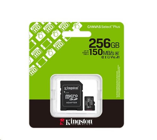 Pamäťová karta Kingston Canvas Select Plus Gen3 microSDXC pre každého, kto chce mať svoje digitálne dáta v bezpečí a rýchlo dostupné na jednom mieste. Hodí pre fotografovanie, natáčanie vlogov, pracovnú činnosť aj hranie. Disponuje rýchlosťou čítania až 150 MB/s , ktorá je vhodná pre svižný presun fotografií, nahrávanie videí alebo činnosť s aplikáciami. Kapacita 256 GB ponúka enormný priestor pre snímky, videá z dovolenky a samozrejme stiahnutý softvér. Výkonnostná trieda A1 spolu s technológiou UHS-I zvládne plynulé spracovanie Full HD videa, multitasking aj náročnejšie úlohy .