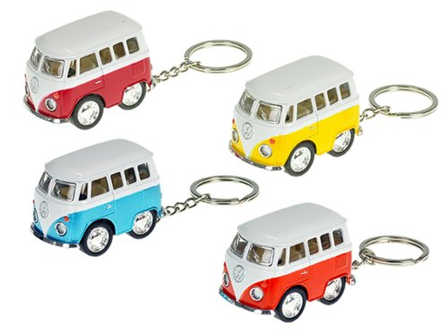 Kinsfun prívesok na kľúče 5 cm Volkswagen mikrobus kov spätný chod - mix farieb (modrá, červená, žltá, oranžová)