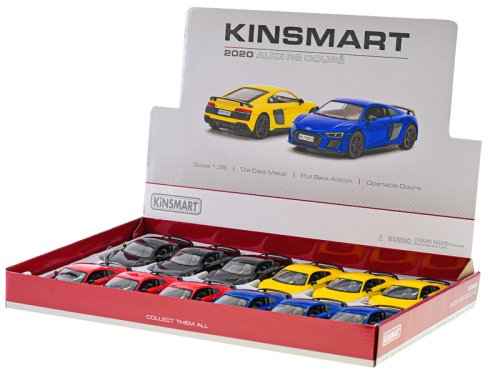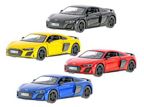 Kinsmart Audi R8 coupe kov 1:36 13 cm na spätný chod - mix farieb (žltá, modrá, červená, čierna)