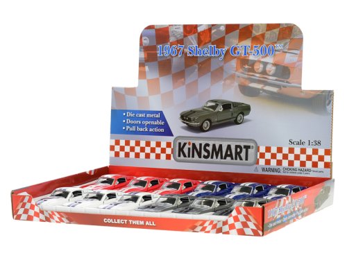 Kinsmart Auto 1:38 Ford Shelby GT500 1967 13 cm kov na spätný chod - mix farieb (modrá, červená, biela, strieborná)