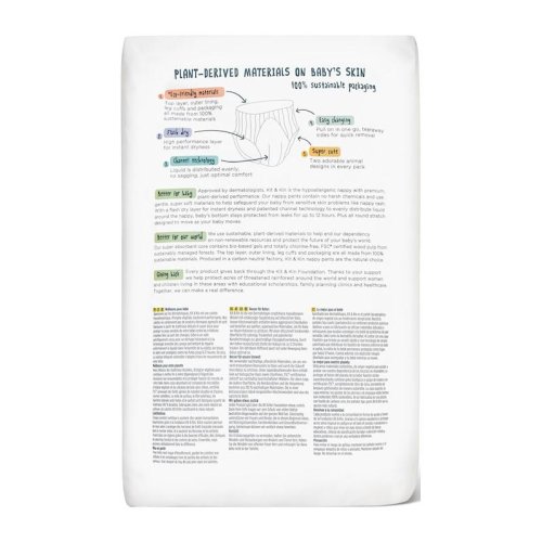 Kit & Kin sú hypoalergénne ekologické plienkové nohavičky v prémiovej kvalite. Obsahujú súčasť prírodného high-tech absorpčného jadra, ktoré využíva výrazne menej chemikálií ako bežné plienky. Plienky Kit & Kin chránia citlivú pokožku vášho bábätka pred pre ňu typickými problémami ako napríklad ekzém či zaparenie z plienok.