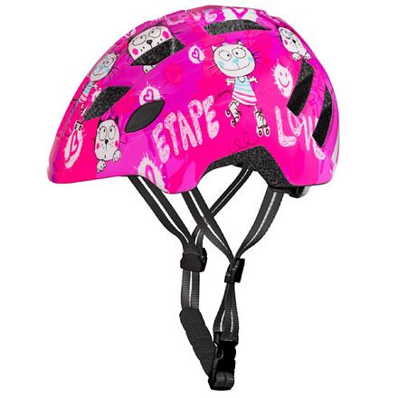Detská prilba Etape Kitty 2.0 je vhodná pre mladé cyklistky, skateboardistky alebo korčuliarov. Moderná helma Etape Kitty 2.0 je vyrobená technológiou In-Mold, vďaka ktorej má helma nízku hmotnosť a vysokú odolnosť. Ďalej detská helma Kitty ponúka 14 ventilačných otvorov pre dobré odvetrávanie, predný integrovaný šilt, sieťku proti hmyzu v prednej časti, reflexné bezpečnostné prvky a EFS (Easy Fit System), ktorý umožňuje plynulé a presné nastavenie veľkosti prilby podľa obvodu hlavy. XS/S 48-52 cm S/M 52-56 cm - technológia In-mold - moderná technológia výroby, kedy je vrchný skelet nalisovaný priamo na polystyrénovú škrupinu - 14 ventilačných otvorov - sieťka proti hmyzu - predný integrovaný šilt - reflexné bezpečnostné prvky - upínací systém EFS