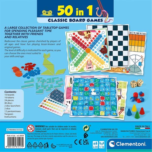 Škatuľa plná zábavy obsahuje sadu klasických stolných hier, s ktorou stráviš príjemné hodiny v spoločnosti rodiny a priateľov. Hra je určená pre 1-10 hráčov.