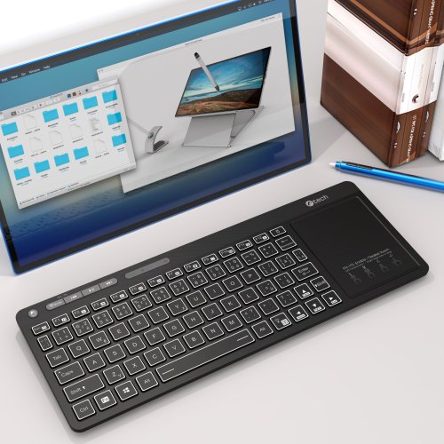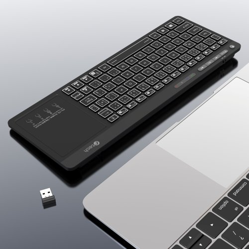 Dotyková plocha namiesto myši Klávesnica obsahuje plnohodnotný touchpad, ktorý úplne nahrádza externú myš. Môžete tak ovládať kurzor, klikanie aj základné gestá priamo z klávesnice – čo je praktické najmä pri ovládaní inteligentnej TV, tabletu alebo pri práci v obmedzenom priestore.