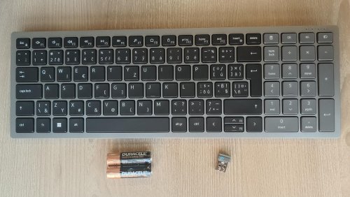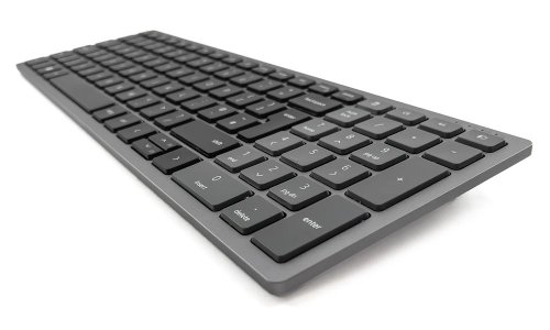 Štýlová plnohodnotná bezdrôtová klávesnica Dell podporuje pripojenie až k trom zariadeniam v jeden moment. Napájanie zaisťujú dve AA batérie , ktoré zaručia výdrž až 36 mesiacov . Pripojenie je realizované bezdrôtovo cez Bluetooth či miniatúrny USB prijímač a technológiu 2,4 GHz .