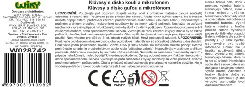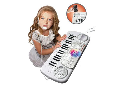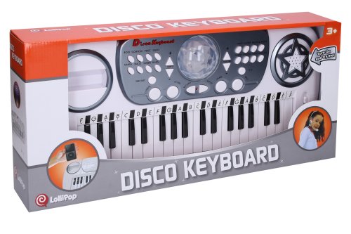Klávesy s disco guľou a mikrofónom. Rozmery 50x21 cm. Disco guľa so svetelnými efektmi. 37 kláves (biele, čierne). Funkcia - 22 ukážkových skladieb, 8 nástrojov, 8 rytmov, nastavenie rýchlosti tempa, 4 bicie, nahrávanie a následné prehrávanie, nastavenie hlasitosti, konektor na pripojenie mobilu/mp3 prehrávača, automatické vypínanie pre úsporu energie. 4xAA batérie a kábel na pripojenie externého zariadenia súčasťou.