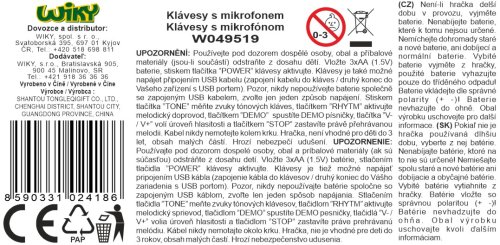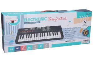 Klávesy s mikrofónom. rozmery: 40x3x15, 1x3, 5cm. USB kábel súčasťou. Batérie 3x AA nie sú súčasťou