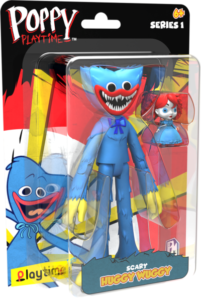Kĺbová figúrka Huggy Wuggy Poppy Playtime s príslušenstvom.