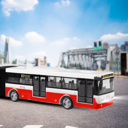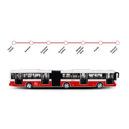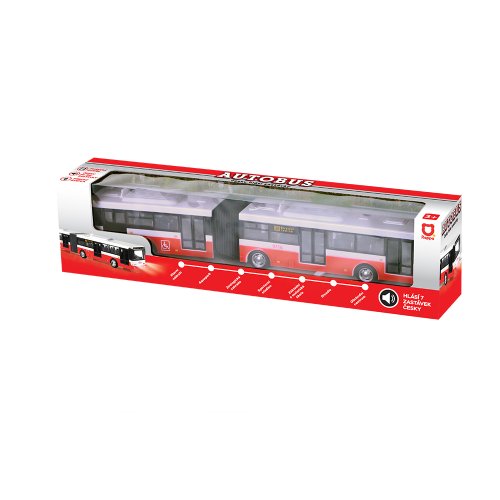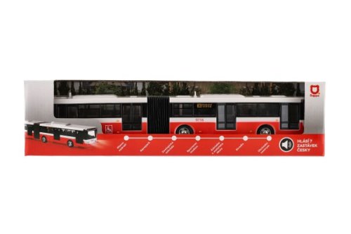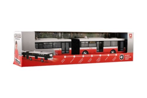 Detailne prepracovaný model, so svetelnými a zvukovými efektmi, stredová časť autobusu je v kĺbe ohybná. Manuálnym otvorením predných dverí hlásia zastávky (Hlavná stanica, Aquapark, Zoologická záhrada, Športový štadión, Základná a materská škola, Divadlo, Obchodné centrum). Česká verzia zaručene nadchne malých aj veľkých milovníkov modelov. Na batérie: 3x LR44/AG13, batérie sú vložené Rozmer autobusu: 36 cm Rozmer krabičky: 40 x 10 x 7,5 cm