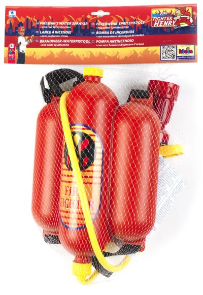Naplňte nádržku vodou, priskrutkujte hadicu k nádržke a môžete začať hasiť pomocou hasiacej pištole. Skvelá letná zábava pre malých hasičov.