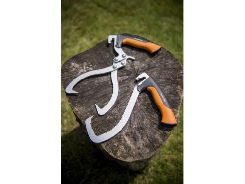 Kliešte na klády s maximálnym priemerom 20 cm na zdvíhanie a prenášanie polien a klád. Sú vhodné na asistenciu pri výrube. Majú plastovú, pohodlne uchopiteľnú rukoväť tlmiacu nárazy a plastové puzdro pre ľahké prenášanie na pracovnom opasku. Šírka: 180 mm, dĺžka: 303 mm, váha: 780 g. Pôvodný Fiskars číslo: 126031.
