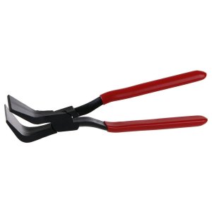 Vyhnuté 45 špeciálne falcovacie klampiarske kliešte. Kované, so stredovým spojom, čeľuste zo zušľachtenej ocele, hrany s miernym rádiusom proti poškodeniu materiálu. Vyrobené z uhlíkovej ocele. Dĺžka celkom je 28 cm, šírka čeľustí je 5 cm. Rukoväte potiahnuté PVC. EAN 8590804042037