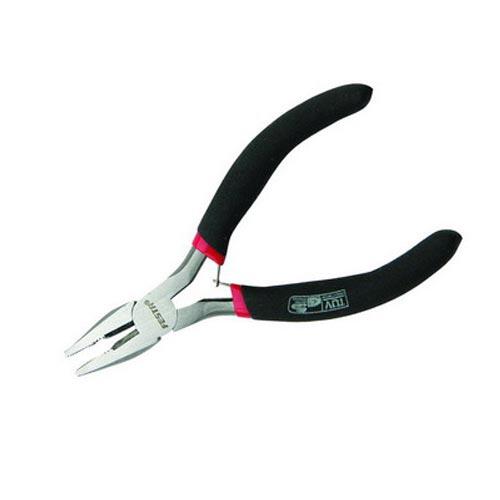 Kombinované kliešte FESTA v prevedení MINI. Pogumované rukoväte, otváracie pierko, pre jemnú dielenskú prácu. EAN 8590804027515