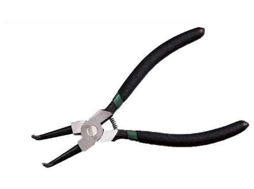 Kliešte segrovky na vnútorné poistné krúžky, v zahnutom prevedení, na montáž a demontáž.
