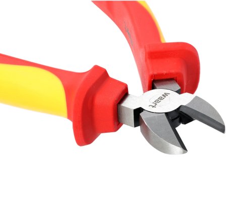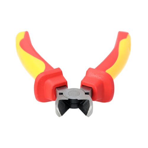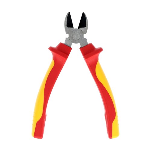 Izolované bočné kliešte 180 mm / 7 ", 1000 V s certifikáciou VDE / GS. Materiál 60CrV w / leštené, kalené, tvrdosť ostrie cca 58-62 HRC. Dvojfarebná rukoväť TPE, možno používať od -25 ± 3 stupňov do 70 stupňov.