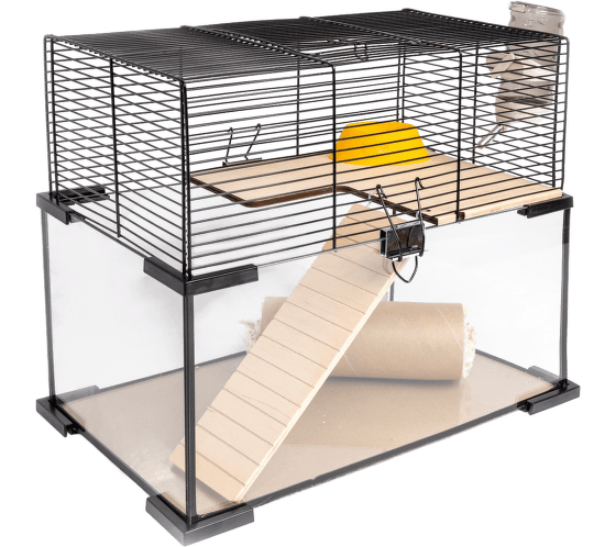Dvojposchodová klietka VETRO PLUS NATURE je ideálnou voľbou pre malé hlodavce , ktorým poskytne dostatok priestoru aj zábavy . Spája praktický dizajn so skleneným spodkom a kovovým krytom , vďaka čomu máte svojho maznáčika neustále na očiach. Vysoký sklenený spodok umožňuje vložiť väčšie množstvo podstielky , v ktorej si zvieratko môže spokojne hrabať a napĺňať tak svoj prirodzený inštinkt . Súčasťou balenia je aj praktické vybavenie , ktoré zaistí pohodlie a aktívny život vášho maznáčika.