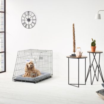 Táto klietka je v čelnej časti zošikmená, aby dobre pasovala do áut s piatymi dverami či combi.