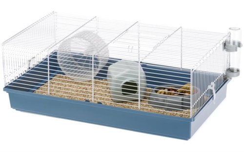 Vybavená klietka Criceti 11 pre škrečky a ďalšie drobné hlodavce. Plastové dno v rôznych farbách. Vybavenie: domček, miska, napájačka, kolotoč Rozmery klietky: dĺžka 57,5 cm, šírka 31 cm, výška 23 cm