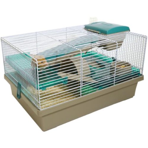 Plastová viacposchodová klietka pre sýrske škrečky a škrečky s vybavením. Je vhodná aj pre väčšinu myší a škrečkov od 6 – 8 týždňov veku. Drôtená klietka Pico, poskytuje rôzne preliezky a skrýše. Jednoduchý prístup do zaveseného domčeka a plnenie napájačky z vonkajšej časti klietky. Veľmi jednoduché čistenie, všetky časti v priestore sú ku klietke pripevnené, zásobník môže byť odobraný a vyčistený. Bočné a horný prístup do klietky. Vybavenie: napájačka, miska na kŕmenie, domček, schodisko a tiché koliesko na cvičenie. Rozmery: 50 × 36 × 31 cm Rozstup medzi drôtmi: 1 cm Farba: hnedá / zelená