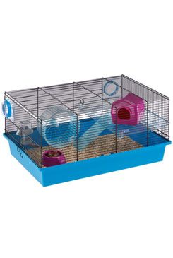 Milos Medium je klietka pre myši, vhodná aj pre škrečky, vyrobená z pevnej kovovej drôtenej siete s plastovou základňou. Vďaka špeciálne pevnému drôtenému pletivu umožňuje ubytovať malé hlodavce v úplnom bezpečí. Stanovište Milos Large je kompletné s užitočným príslušenstvom, ako je polica, rebrík, hniezdo a koliesko, rovnako ako priehľadné rúrky navrhnuté pre skvelý pôžitok vášho zvieraťa. Praktická a ľahko sa čistí, je vybavená vysokou základňou, ktorá zabraňuje vysypaniu podstielky mimo klietku, pre vždy upratané a čisté prostredie.