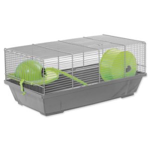 Klietka pre myši a iné malé zvieratá s výbavou. Súčasťou je koliesko na behanie, poschodie s rebríkom a domček.