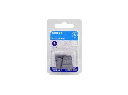 Klin č.2 na zabezpečenie upevnenia rôznych druhov náradia (sekery, kalače, kladivá, motyky a pod.) na poriskách či násadách.