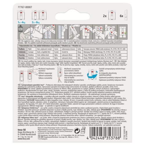 nastaviteľný nalepovací klinec na dlaždice a kov tesa ® Powerstrips výškovo nastaviteľný ideálny na vešanie a zarovnávanie predmetov a kuchynského náčinia na hladké pevné povrchy, ako sú dlaždice a kov.