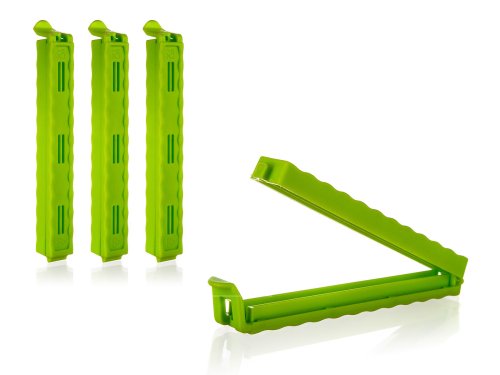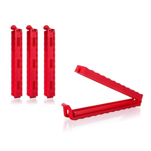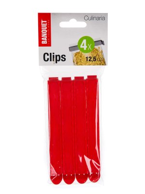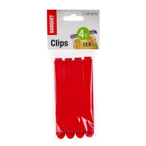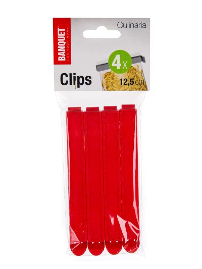 Súprava klipsov CULINARIA je vhodná na uzavretie vrecúšok, aby sa do potravín nedostal prach ani iné nečistoty. Balenie obsahuje 4 ks v zelenej alebo červenej farbe o veľkosti 12,5 cm.