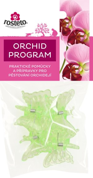 Dekoratívna klipsy v tvare motýľa slúži na uchytenie obsahovať stonky kvetov orchideí k opornej tyčke. Sú balené po 4 ks v igelitovom sáčku s EURO závesom - pre možnosť zavesenie na stojan.