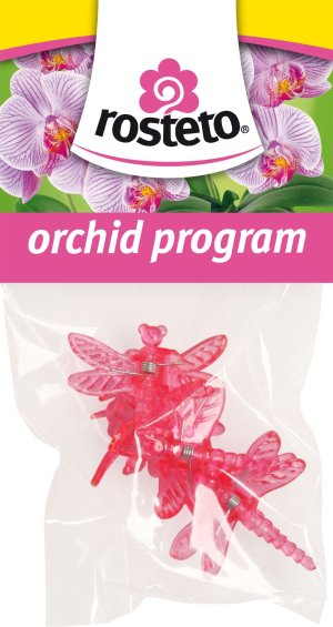 Dekoratívne klipsy v tvare vážky slúžia na uchytenie kvetného stvolu orchideí k opornej tyčke. Sú balené po 4 ks v igelitovom sáčku s EURO závesom - pre možnosť zavesenia na stojan.