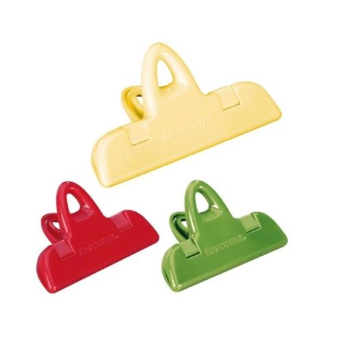 Klipsy na vrecká Tescoma Presto - vynikajúce na uzavretie sáčkov, potraviny zostanú dlhšie svieže Vyrobené z odolného plastu, vhodné do chladničky a umývačky Súprava obsahuje 3 ks: 1x šírka 11 cm, 2x šírka 7 cm Farba: …