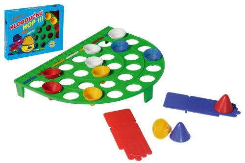 Klasická hra Klobúčika hop! Je určená pre malých aj veľkých. Je to jednoduchá a zábavná hra, kedy sa všetci hráči snažia čo najpresnejším odpalom z rampy, dostať klobúčik do dier hracej plochy a získať čo najviac bodov. Táto hra je pre neobmedzený počet hráčov. Balenie obsahuje hraciu plochu, 2 vystreľovacie rampy a farebné klobúčiky. Odporúčaný vek 4+