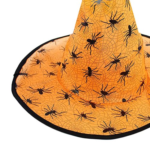 Senzačný oranžový klobúk je dekorovaný pavučinami a pavúkmi. Klobúk je skvelým doplnkom na Halloween party alebo karneval! Staň sa hviezdou večierku vďaka tomuto klobúku!
