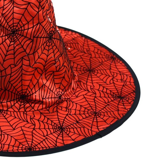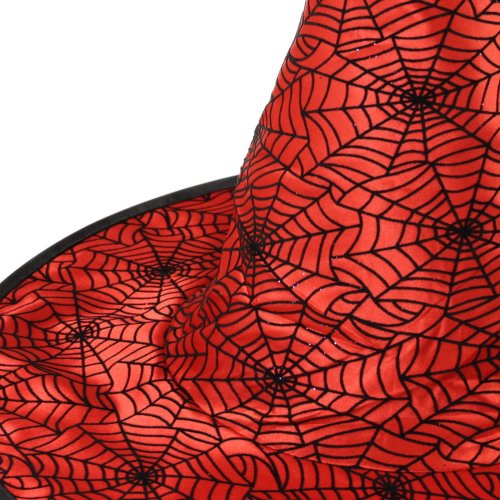 Kúzelný klobúk červenej farby zdobený čiernymi magickými pavučinami je určený pre dospelých. Staňte sa hviezdou halloweenskeho večierka vďaka tomuto neprehliadnuteľnému klobúku a ohromte tak všetkých svojich priateľov!