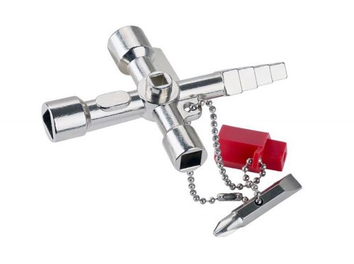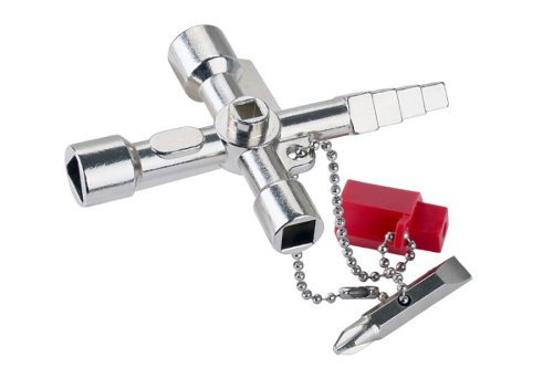 Univerzálny kľúč na otváranie elektrických rozvádzačov, plynových a vodných kohútov, na klimatizáciu, ventiláciu a odvzdušňovanie kúrenia. Vhodný aj pre kľučky okien či dverí a pre komínové dvierka.