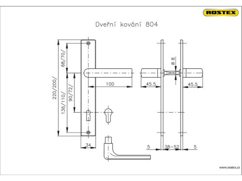 Dverné kovanie kľučka so štítom 804/90 mm je vhodné pre dvere otvárané dovnútra.