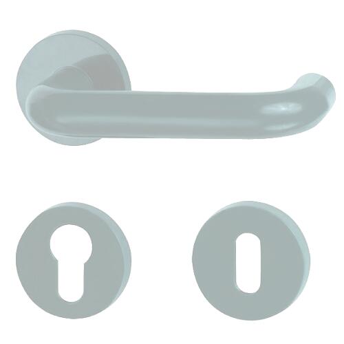 Kľučka dv. so štítkami PH BÍ Farba: biela Materiál: plast Kľučka s moderným a nadčasovým dizajnom vhodná na inštaláciu skôr do interiéru.