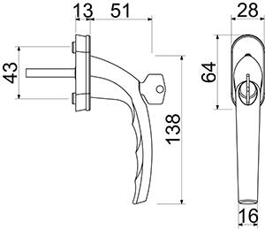 Hliníková uzamykateľná okenná kľučka so zinkovým jadrom. Uzamknutie jednoduchým zatlačením vložky do kľučky. Možnosť uzamknutia aj pri zvislej polohe vetrania. Aretácia kľučky po 45 °.