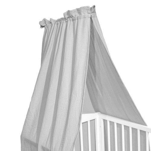 Baldachýn na posteľ z jednofarebného bavlneného mušelínu je dokonalým doplnkom do detskej izby.