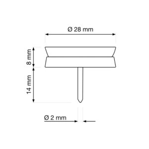 • Filcový klzák s klincom s priemerom 24 mm alebo 28mm v bielej farbe