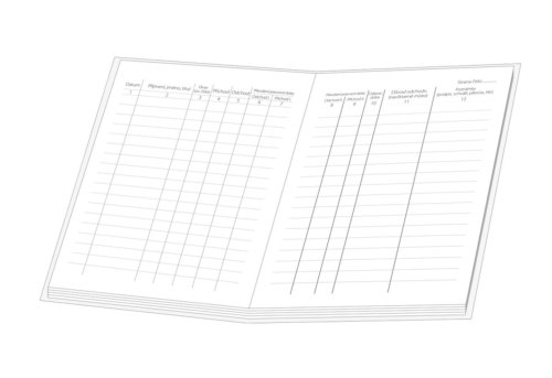 Knihu príchodov a odchodov s 100 listami kvalitného bezdrevného papiera so špeciálnou potlačou vnútorných listov a potrebnými kolónkami na vyplnenie