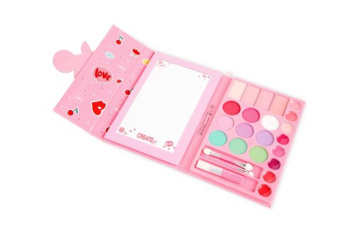 Kniha s líčením na magnet - hniha po roztvorení obsahuje aplikátor na očné tiene, štetec, štečiek, 4× make up, 9 farieb očných tieňov a 8 farieb rúžov + zrkadlo.
