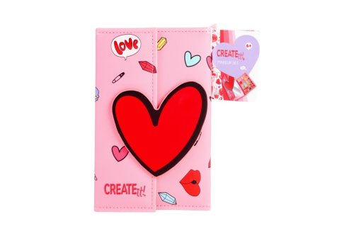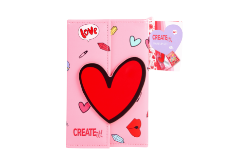 Kniha s líčením na magnet - hniha po roztvorení obsahuje aplikátor na očné tiene, štetec, štečiek, 4× make up, 9 farieb očných tieňov a 8 farieb rúžov + zrkadlo.