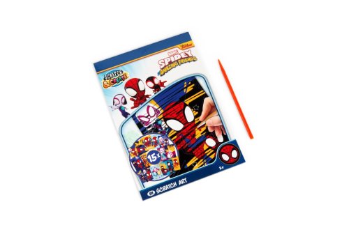 Kreatívna kniha s motívmi obľúbených postavičiek Spidey, ktorá ponúka originálny spôsob tvorenia. Pomocou špeciálnej škrabky deti postupne odkrývajú farebné podklady a vytvárajú tak nádherné obrázky svojich obľúbených hrdiniek.Formát A5, ideálny na doma aj na cesty, rozvíja kreativitu, fantáziu a jemnú motoriku, jednoduché a zábavné tvorenie bez neporiadku. Kniha obsahuje 15 obrázkov.