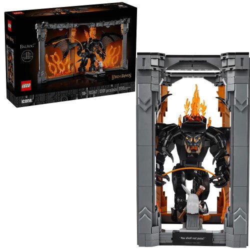 Stavebnica knižnej zarážky s filmovým motívom Postavte si kúsok Stredozeme so stavebnicou LEGO® Icons Knižná zarážka: Pán prsteňov – Balrog pre dospelých V krabici nájdete všetko, čo potrebujete na zostavenie modelu LEGO® Icons Knižná zarážka: Pán prsteňov – Balrog, figúrku Balroga s ohnivým bičom mečom Otvorte knižné zarážky a odhaľte súboj na mostíku v Khazad-dom a napolohujte odnímateľnú minifigúrku Gandalfa Šedého a figúrku Balroga do dynamických póz Vložte knižnú zarážku medzi svoje obľúbené knihy a vytvorte si tak náhľad do Stredozeme, alebo model