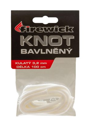 Knôt lampový FIREWICK. Guľaté bavlnené knôty sa používajú podľa použitého priemeru do všetkých typov lámp, vrátane lámp petrolejových a záhradných pochodní. Rozmery: priemer 3,2 mm, dĺžka 100 cm.