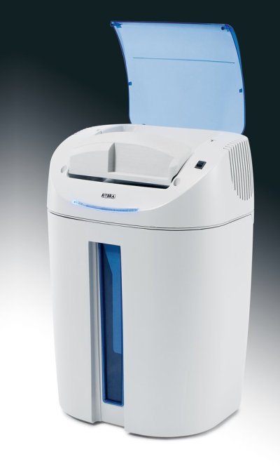 Skartovač je vybavený systémom Mobile Protection Security s automaticky so zatvárajúcim krytom a duálnymi elektronickými senzormi, ktoré okamžite prerušia chod stroja pri zdvihnutí veka. Bezpečnostné zastavenie funguje aj pri vybratej alebo plnej odpadovej nádobe.